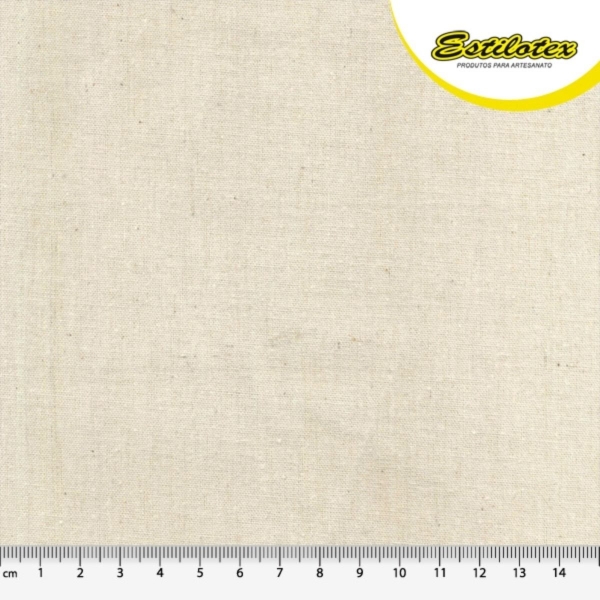 Tecido Cru Estilotex, agora na versão lisa, ou seja, sem o fio Flamê. Tecido ecologicamente correto, pois é cru de máquina, muito utilizado para forração em geral, produção de bonecas, confecção, etc O tecido é produzido com fio fino, em sua construção a trama é bem fechada, o que possibilita um tecido leve e apropriado para fazer pequenos detalhes em pinturas.